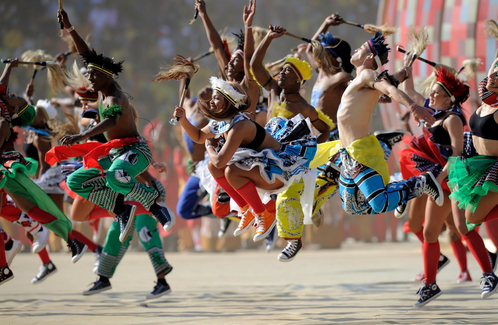 Artists perform during the World Cup opening ceremony at Soccer City in Johannesburg, South Africa, Friday, June 11, 2010. (AP/Martin Meissner)